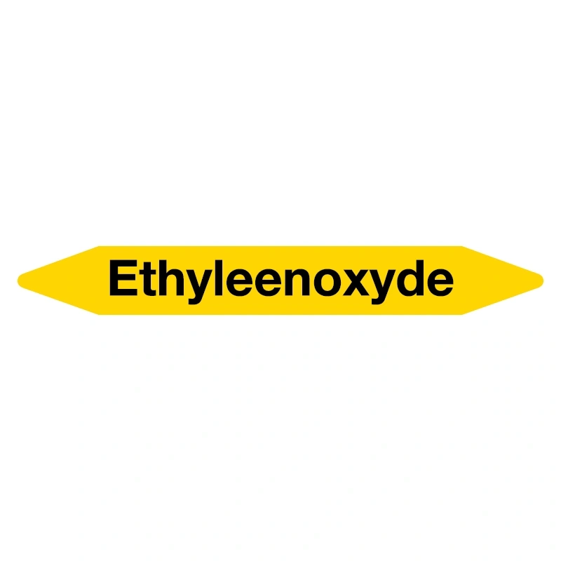 Leidingmarker Ethyleenoxyde (gassen) stickers worden geleverd als rechthoekige stickers met pijlen aan de beide zijkanten.Deze worden geleverd iny het geel met zwarte tekst voor duidelijke leesbaarheid.Europese richtlijnenDe Europese richtlijn inzake leidingmarkering verplicht de werkgever alle leidingen en verbindingspunten te identificeren. Zoals bijvoorbeeld aan het start en eindpunt van een leiding, aan toestellen, op punten waar een leiding door een muur of wand gaat en ga zo maar door.Kortgezegd: Het is belangrijk te weten wat de inhoud van een leiding is.- Opmaaky volgens Europese richtlijn 92/58.- Identificatiekleuren volgens normbladen NBN 69 en NEN 3050.VolumevoordeelWanneer u denkt aan bestellen van deze sticker, profiteer dan van onze voordelig geprijsde printvellen!U bent veel voordeliger uit als u een vel besteld, in plaats van losse stickers.